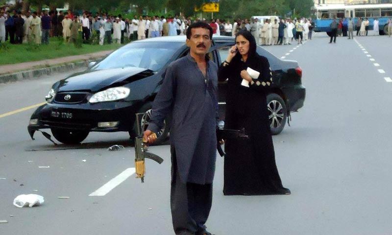 Man with an AK47 brought #Islamabad to a standstill earlier after holding own family hostage; calling for sharia law
